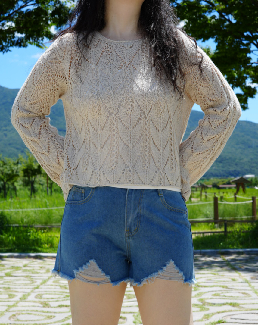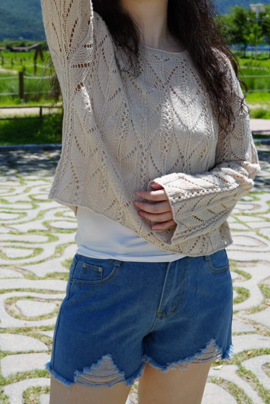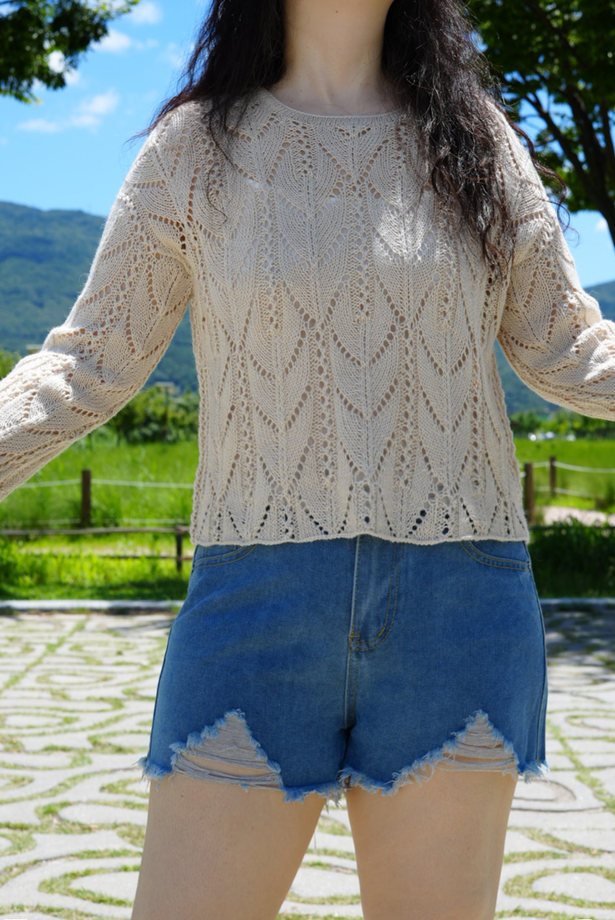 사이즈 1 착용: Majo garn Sunny linen / Ecru 색상