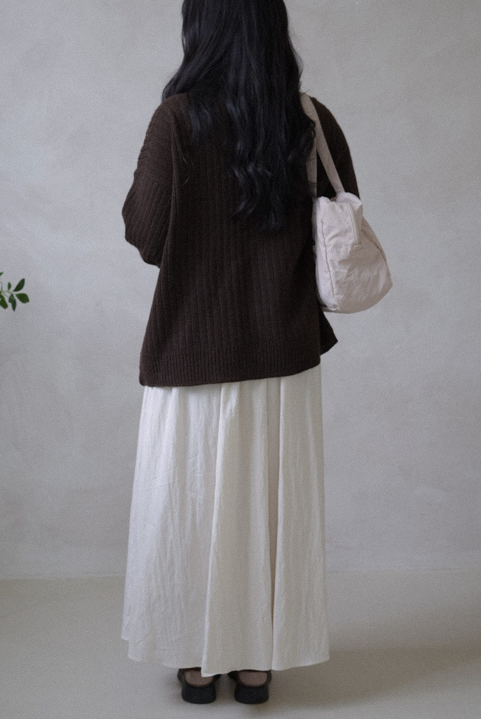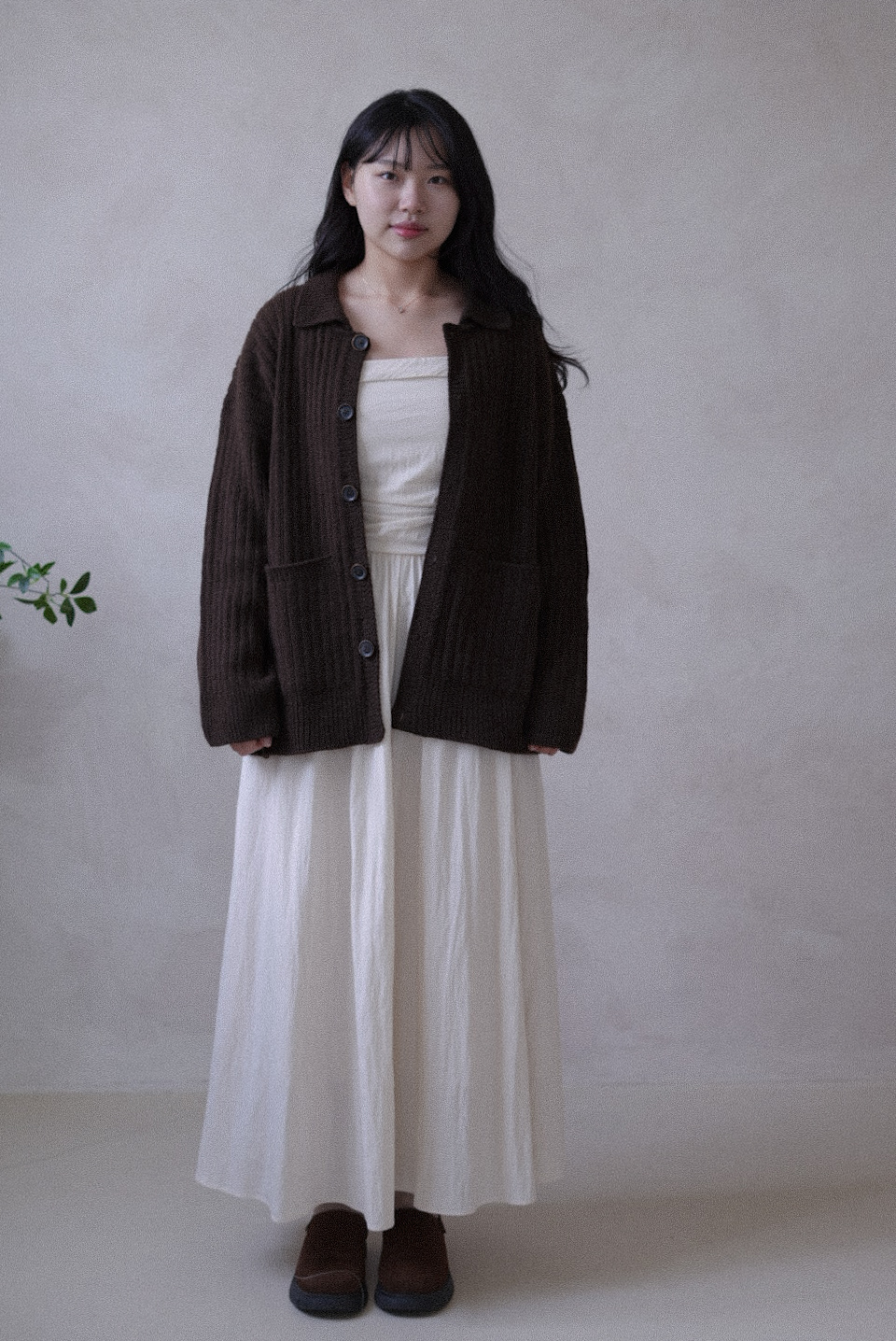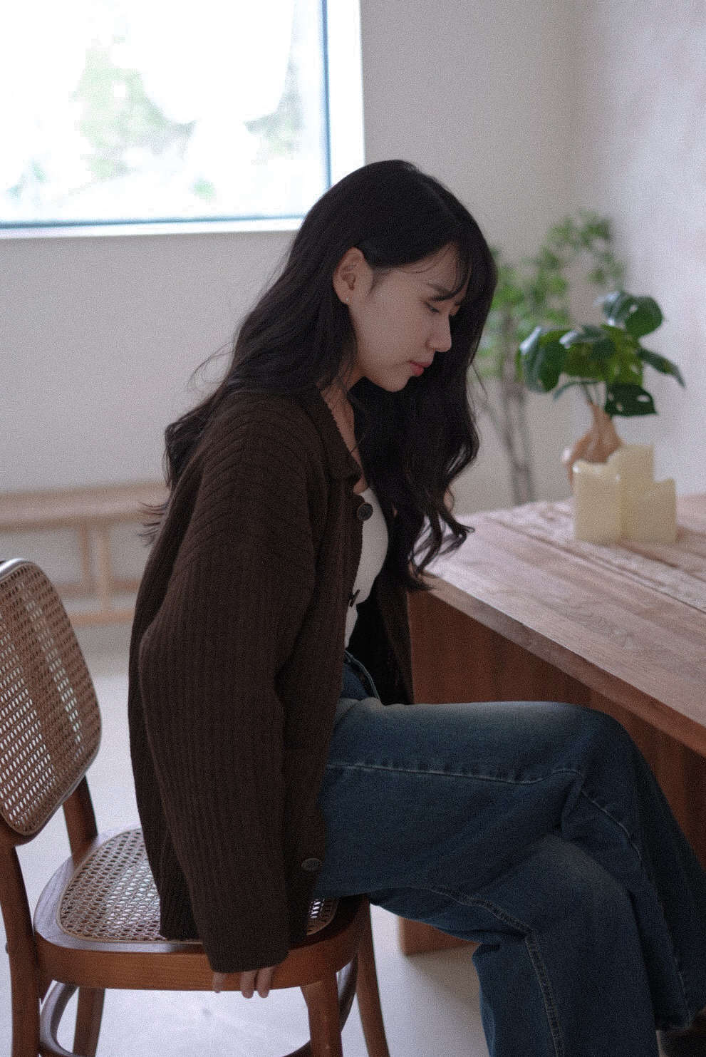 조용하지만 깊이 있는 분위기를 담아, 담백한 고무뜨기를 바탕으로 완성했어요.
