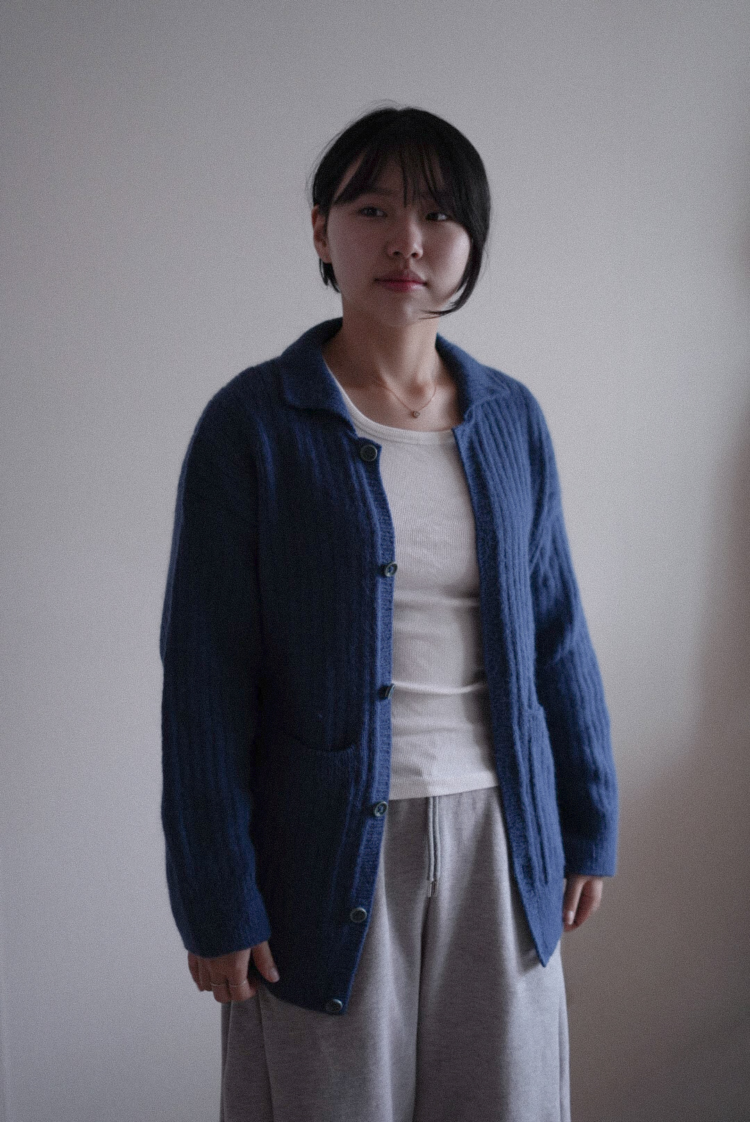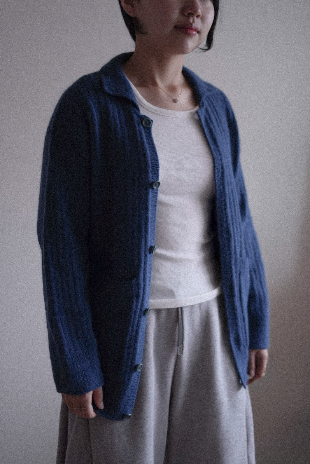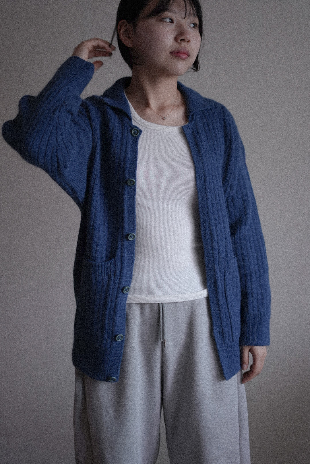 손뜨개 의류치고는 하이게이지로 제작되어 조직이 단정하고 세련된 인상을 줍니다. 가볍지만 탄탄하게, 일상 속에서 오래 입을 수 있는 카디건입니다.